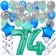 40-teiliges Geburtstagsdeko-Set mit Luftballons, Happy Birthday Aquamarin zum 74. Geburtstag