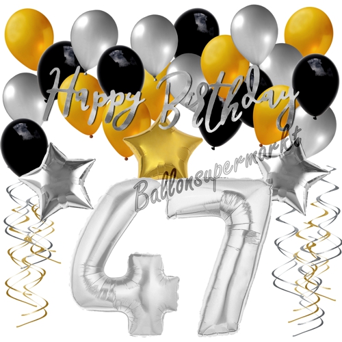 Geburtstagsdeko-Set mit Luftballons, Happy Birthday Glamour zum 47. Geburtstag, 34-teilig