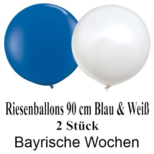 2 Große Rund-Luftballons, Blau und Weiß, 90 cm, Bayrische Wochen Dekoration