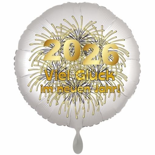 Großer Silvester Luftballon aus Folie, 70 cm groß, "Viel Glück im neuen Jahr!" mit Helium gefüllt