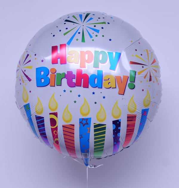 Großer Folienballon in Rundform mit der Aufschrift "Happy Birthday".