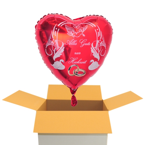 Roter Herzluftballon zur Hochzeit, Hochzeitsringe, Alles Gute zur Hochzeit, inklusive Helium