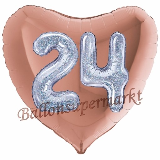 Jumbo Herzballon Zahl 24, roségold/silber holografisch