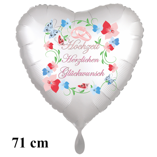 Hochzeit - Herzlichen Glückwunsch. Herzluftballon, 71 cm großer Folienballon zur Hochzeit, ohne Helium