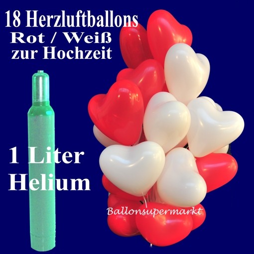 18 Herzluftballons in den Farben Rot und Weiß mit Helium
