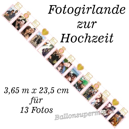 Mit der zauberhaften "Fotogirlanden zur Hochzeit" zaubern Sie schnell und einfach eine effektvolle Dekoration für Ihr Hochzeitsfest und lassen die schönsten Momente Ihrer Liebe noch einmal Revue passieren. Bezaubern Sie Ihre Gäste mit den wundervollen, vielseitigen Dekoideen aus dem Ballonsupermarkt.