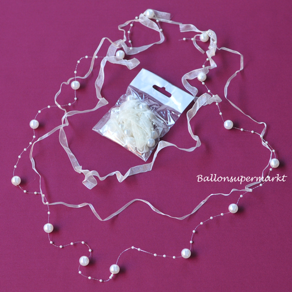 Girlande zur Tischdekoration mit Perlen und Bändern, Creme, 120 cm