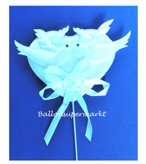 Taubenpaar mit Schleife und Ringen, Deko-Stecker-Hochzeit