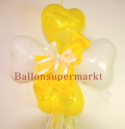 Dekorationen aus Mini-Herzluftballons, Weiß-Gelb