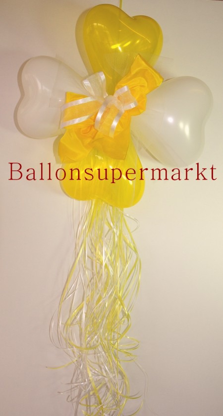 4 Stück Herzluftballons in den Farben Weiß und Gelb mit Zierschleife