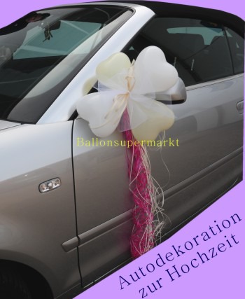 Autodeko Hochzeit, Dekoration Herzen aus Mini-Luftballons in Weiß