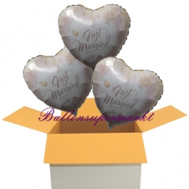 3 Herzluftballons zur Hochzeit, Just Married, inklusive Helium