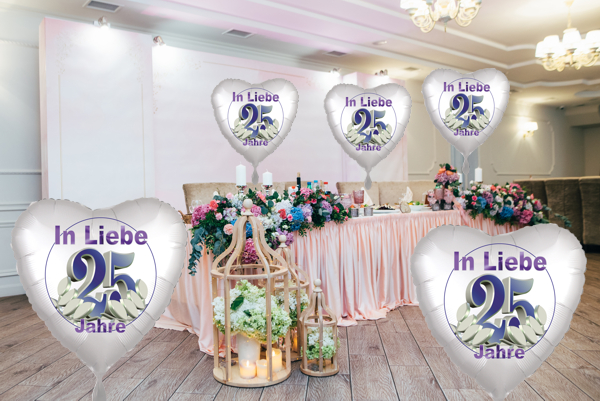 Silberne Hochzeit Folienballon-Deko "25" inkl. Ballongas
