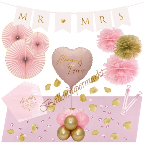 Romantische Dekoration im Set in zartem Rosé und edlem Gold zur Hochzeit.