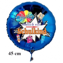 "Hurra - endlich ein Schulkind". Blauer, runder Luftballon inklusive Helium-Ballongas