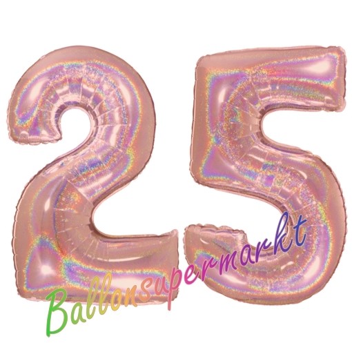 Zahl 25 Luftballons in Rosegold, holografisch