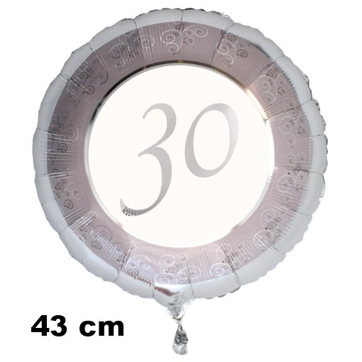 Rundballon, silber. Bedruckt mit der Zahl 30 und Ornamenten