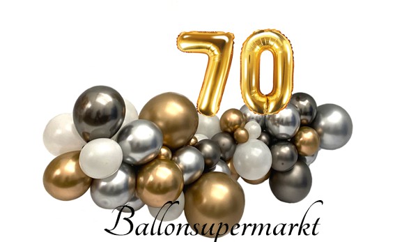 Eine 1,50 Meter lange Ballongirlande mit zwei goldenen Zahlenballons 70