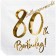 Edle Servietten zum 80. Geburtstag in Weiß, aufwendig in Gold metallic bedruckt mit der Auschrift: 80th Birthday. Mit den hochwertigen 80th Birthday Gold Servietten zaubern Sie schnell eine tolle und effektvolle Tischdekoration.
