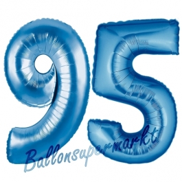 Luftballons aus Folie Zahl 95, Blau, 100 cm mit Helium zum 95. Geburtstag