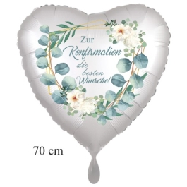 Zur Konfirmation die besten Wünsche! Großer Luftballon aus Folie, Satin de Luxe, weiß, Lorbeer, mit Helium