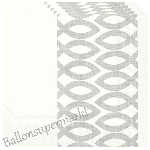 Servietten zu Kommunion und Konfirmation mit Fischen in Silber - Ceremonial Day