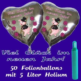 Midi-Set Silvester, "Viel Glück im neuen Jahr!", 50 silberne Herzballons aus Folie mit Helium