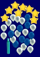 3 blaue Luftballons, 3 weiße Luftballons, 3 Folienballons "Sterne"