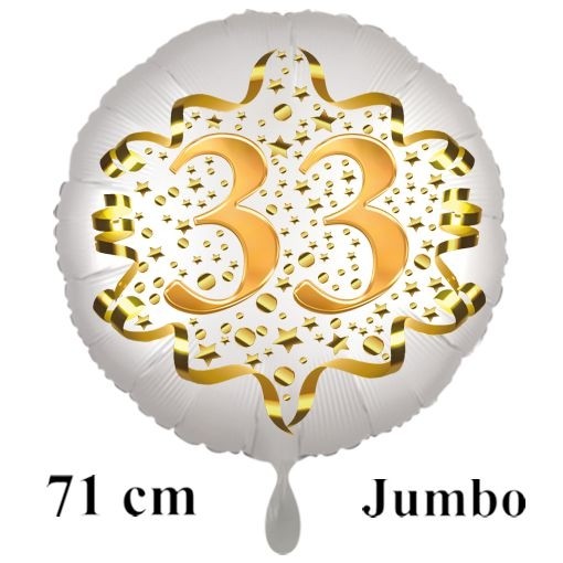 Jumbo Luftballon aus Folie zum 33. Geburtstag, Satin Weiß, 71 cm, rund, inklusive Helium