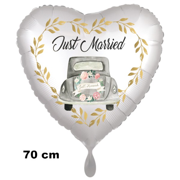 Just Married Auto Gold, Jumbo Folienballon zur Hochzeit, Herz inklusive Helium-Ballongas