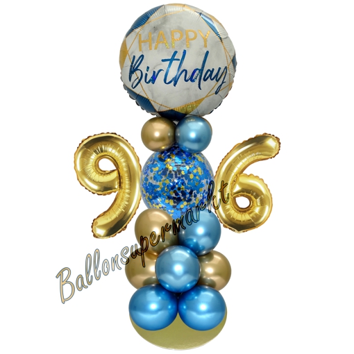 Mit der Blue Birthday Ballondekoration zum 96. Geburtstag in Blau und Gold zaubern Sie mit wenigen Handgriffen eine liebevoll aufeinander abgestimmte Dekoration. Auch wunderschön als Geldgeschenk, wenn Sie die Dekoration vorher mit kunstvoll gefalteten Geldscheinen schmücken. Bereiten Sie dem Geburtstagskind einen unvergesslichen Tag mit den unvergleichlichen Dekoideen aus dem Ballonsupermarkt.