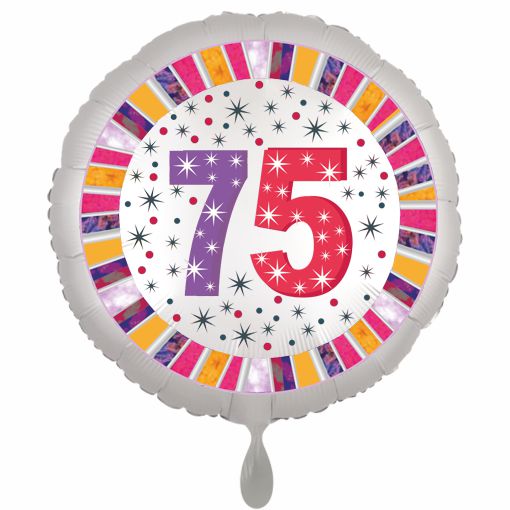 - Luftballon aus Folie, 75. Geburtstag, Happy Birthday, weiss, ohne Helium