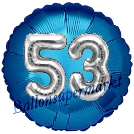 Jumbo 3D Luftballon, Silber und Blau zum 53. Geburtstag, Jumbo-Folienballon mit Ballongas