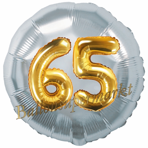 Jumbo 3D Luftballon, Gold und Silber zum 65. Geburtstag, Jumbo-Folienballon mit Ballongas