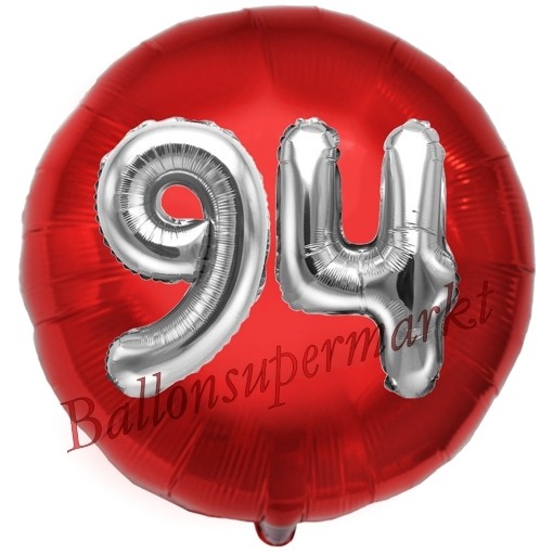 Luftballon Jumbo 3D, Silber und Rot zum 94. Geburtstag, Jumbo-Folienballon mit Ballongas