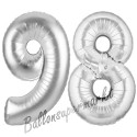 Jumbo 3D Luftballon, Silber und Blau zum 98. Geburtstag, Jumbo-Folienballon mit Ballongas