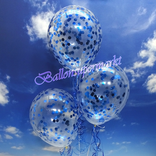 Jumbo Konfetti-Ballons, Latex 45 cm Ø, 3 Stück, Transparent, gefüllt mit Konfetti in Blau