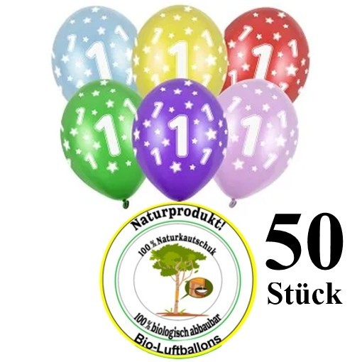Geburtstag feiern und dekorieren mit Luftballons. Die Zahl 1, zum 1. Geburtstag ist mit Sternchen und Pünktchen vielfach auf diese Ballone gedruckt. Zum 1. Jubiläum und zu Geburtstagen mit der Jahreszahl 1 sind die Latexballone mit Luft und vor allem auch mit Helium eine schöne Attraktion. Mit Ballongas, Luftballongas, lassen sich diese Luftballone dekorativ gestalten und die Partydekoration und Geburtstagsdekoration wird perfekt.