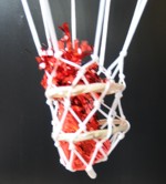 Fesselballon mit einem Stuffer-Luftballon. Das Netz hat eine Höhe von 80 cm, der Korb ist 9 cm breit und 5 cm hoch. In den Korb kann man wunderschöne Geschenke hineinlegen. Auch in den Stufferballon können Sie Dekorationen oder Geschenke bis zu 7 cm selbst beifügen.