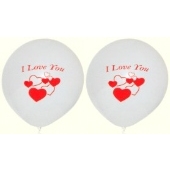 Luftballons, Latex 30 cm Ø, 10 Stück, Weiß mit Herzen in Rot