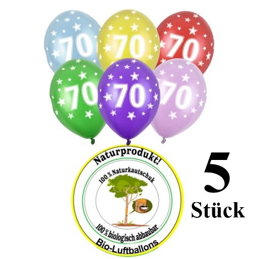 Geburtstag feiern und dekorieren mit Luftballons. Die Zahl 70, zum 70. Geburtstag ist mit Sternchen und Pünktchen vielfach auf diese Ballone gedruckt. Zum 70. Jubiläum und zu Geburtstagen mit der Jahreszahl 70 sind die Latexballone mit Luft und vor allem auch mit Helium eine schöne Attraktion. Mit Ballongas, Luftballongas, lassen sich diese Luftballone dekorativ gestalten und die Partydekoration und Geburtstagsdekoration wird perfekt.