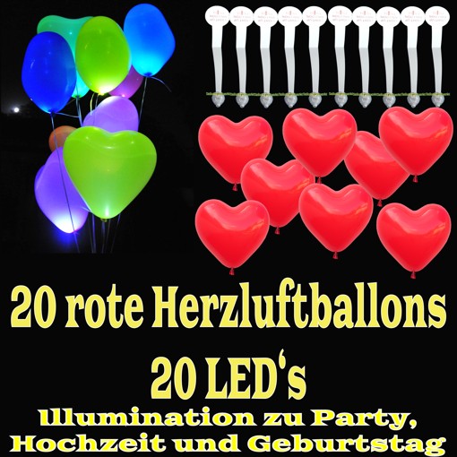 20 Stück LED Ballonlichter mit 20 roten Herzluftballons