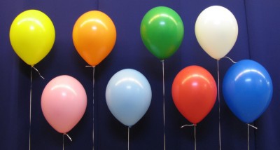 Farben der Luftballons: Lila, Gelb, Grün, Pink, Orange, Blau, Weiß, Rot, Bunt gemischt