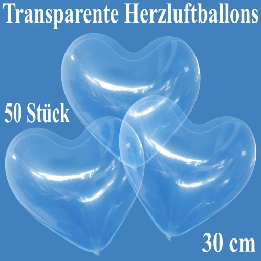 50 Herzluftballons Transparent, 30 cm