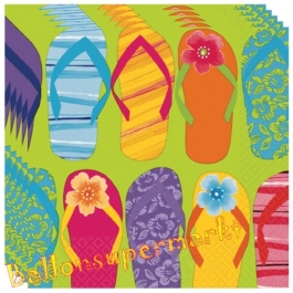 Party-Servietten, bunt bedruckt mit Flip Flops. Servietten-Dekoration zur Mottoparty mit dem Thema: Tropen, Hawaii, Strand und Meer.