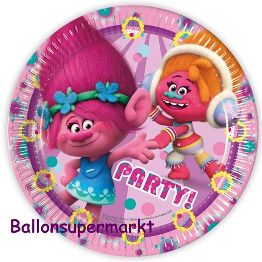 8 Stück Teller aus Kartonage, Dreamworks Trolls