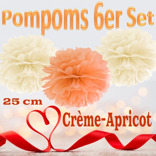Pompoms, Crème und Apricot, 25 cm, 6er Set