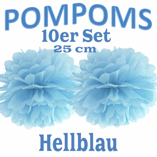 Pompoms, Himmelblau, 25 cm, 10er Set
