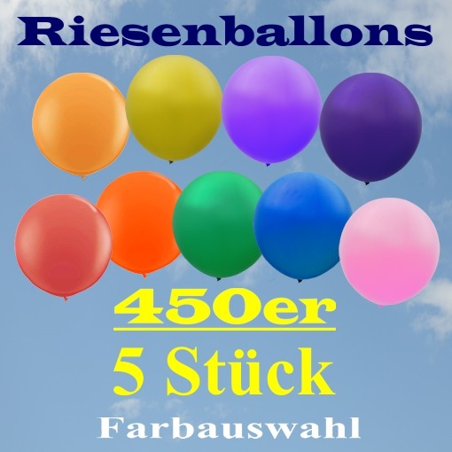 Farben der Riesenballons: Blau, Orange, Gelb, Rot, Weiß, Grün, Pink, Rosa, Schwarz, Violett