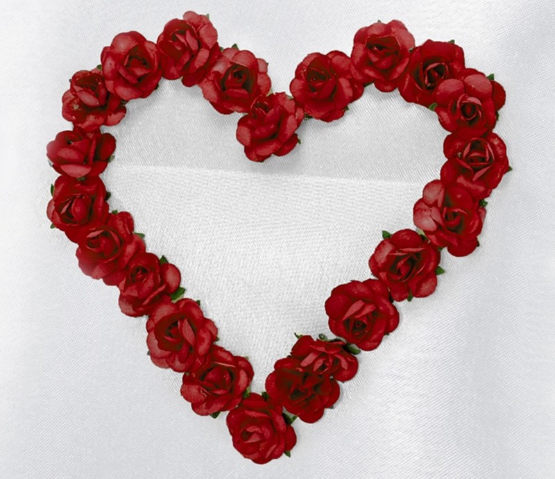 Weiß mit Herz aus roten Rosen